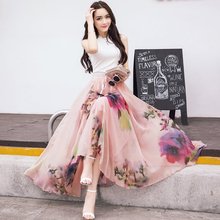 韩版2017夏装新款大码百搭半身长裙波西米亚雪纺印花大摆裙仙女裙