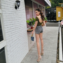 守衣奴夏季欧美女装修身百搭纯色短款体恤性感露背短袖打底T恤