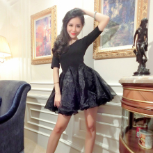 守衣奴2017春夏新款欧美女装性感黑色欧根纱名媛打底连衣裙短裙子