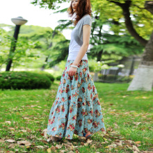 原创森女复古文艺春夏季半身裙碎花色亚麻裙棉麻大摆裙长裙子大码