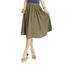 2017新款女士棉麻半身裙子亚麻中长裙春装裙松紧百搭通勤夏季中裙