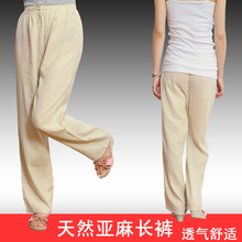 春夏季亚麻长裤子居家休闲薄棉麻女裤直筒裤宽松紧高腰中老年大码