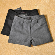2016新款厚毛呢短裤秋冬百搭靴裤显瘦卷边热裤韩版休闲外穿女阔腿