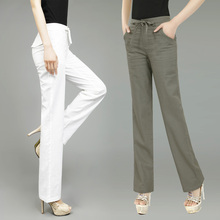 2017春夏季亚麻裤子棉麻微喇女裤休闲裤显瘦时尚高腰直筒长裤抗皱
