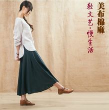 美布棉麻长裙亚麻裙大摆裙半身裙子夏季文艺森女2017春装复古纯色