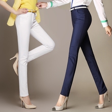 春夏季白色女裤小直筒韩版休闲裤长裤显瘦小脚裤修身职业西裤大码