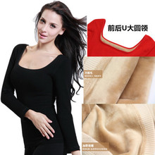 超低领大领 修身加绒加厚无缝美体保暖上衣 女式U领秋冬打底内衣