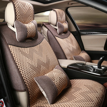 亚麻汽车坐垫四季通用日产奇骏轩逸逍客全包座垫夏季冰丝车垫套