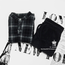 BF风梭织纯棉格子点点睡裙 家居长袖衬衫式睡衣
