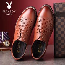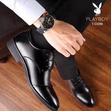 花花公子男鞋春季正品商务正装男士系带皮鞋男真皮英伦圆头鞋子男