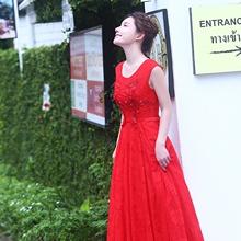 晚礼服2016新款结婚一字肩红色新娘敬酒服订婚宴会礼服长款女韩式