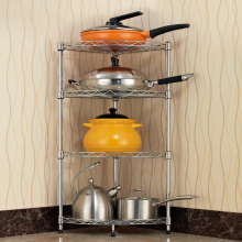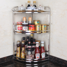 包邮厨房置物架落地扇形转角锅架多层收纳储物架层架子不锈钢色