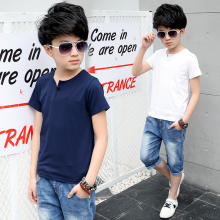 纯棉男童T恤2017新款中大童短袖吸汗白色体恤衫夏季b类小学生上衣