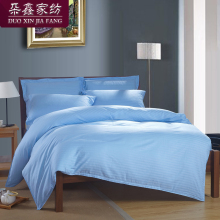 素纯色全棉贡缎四件套纯棉缎条宾馆单双人三件套酒店床上用品被套