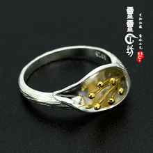 纯手工戒指 泰国清迈925纯银戒指 设计师原创小花蕊金戒指女指环