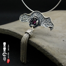 990足银红刚玉流苏荷叶项链女新品泰银吊坠 复古纯银项坠文艺饰品