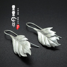清迈新款植物花卉设计师原创 925坠 耳饰品纯银耳环泰国三角莲花