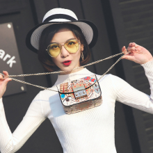 个性涂鸦链条小方包2017新款印花小包女时尚可爱斜挎包潮流单肩包