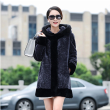 2016冬季新款进口羊剪绒皮草外套女长款皮毛一体大衣连帽真皮大码