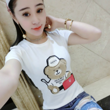 欧洲站短袖t恤女纯棉卡通立体小熊图案学生春夏新品半袖打底衫潮