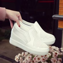 2017春夏季坡跟乐福鞋女韩版内增高小白鞋懒人一脚蹬镂空网纱单鞋