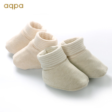 aqpa婴儿护脚套纯棉秋冬婴儿软底鞋子宝宝超柔天然彩棉护脚套保暖