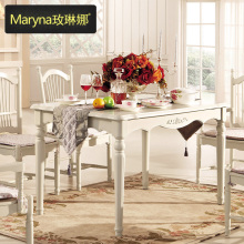 玫琳娜家具 欧式餐桌 韩式田园实木餐桌长方形6人餐桌椅组合饭桌