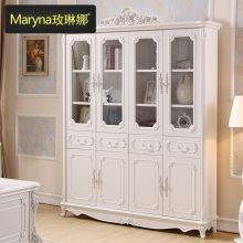 玫琳娜欧式四门书柜书房家具玻璃门抽屉书架书橱组合三门书柜