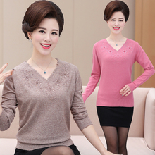 新春秋季中老年女装羊毛衫长袖上衣宽松妈妈装秋装打底衫中年毛衣
