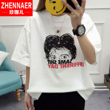 韩版2017夏装少女衣服学院风宽松印花短袖女t恤初中学生大码上衣