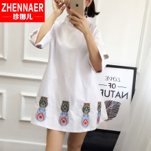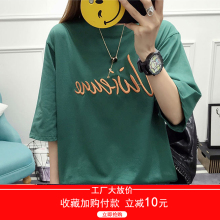 T恤女短袖夏季学生五分中袖绣花简约上衣韩版大码潮流半袖体恤衫