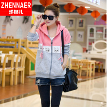 韩版少女春秋休闲上衣中学生加绒卫衣青少年大码加厚外套运动外衣