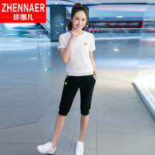 运动服套装女夏季初中高中学生韩版宽松短袖七分裤跑步休闲两件套