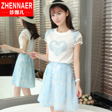 韩版少女2017新款夏装小清新时尚套装T恤连衣裙女学生显瘦雪纺裙