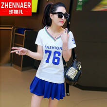 夏装少女短袖时尚休闲运动套装韩版网球服高中学生修身裤裙两件套
