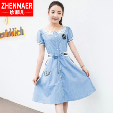 少女春夏装可爱娃娃领民族复古风刺绣连衣裙女学生韩版宽松中裙子