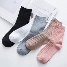 日系复古粗线韩国纯色简约森系女袜文艺范袜竖条素色百搭中筒袜