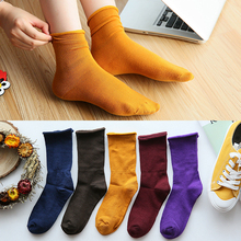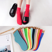 全棉日系复古堆堆袜套春夏季韩国女士糖果色袜子中筒森系纯色女袜