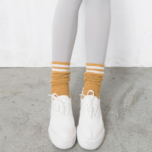 秋冬棉袜中筒袜子女森系韩国木耳边堆堆袜日系长筒竖条纹女袜靴袜