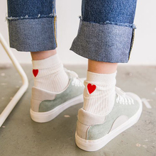 袜子女简约纯色韩版棉袜日系刺绣爱心春夏运动中筒清新甜美堆堆袜