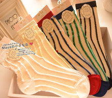 夏季日系甜美女士透明短丝袜玻璃丝水晶纱条纹超薄潮流原单可爱袜