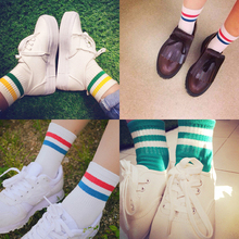 竖条纹纯色粗线个性中筒百搭简约袜子日韩潮流袜复古彩色女袜