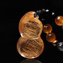 开光巴西天然铜顺金发晶钛晶葫芦貔貅吊坠男女士饰品水晶钱袋挂件