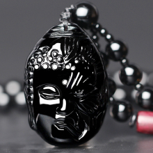 开光天然黑曜石守护神吊坠八大本命佛十二生肖水晶项链转运珠男女