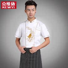 厨师长工作服夏装 绣龙厨师服短袖 饭店餐厅厨房工作服食堂厨师服