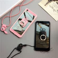 oppor9s plus手机壳带挂绳指环扣支架保护套硅胶皇冠镜面情侣潮女