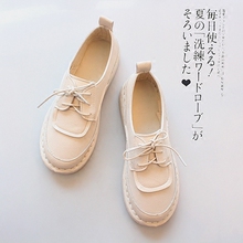 森女系文艺小清新圆头系带平底小白鞋舒适浅口百搭休闲鞋软底单鞋