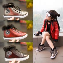 冬款童鞋儿童亮皮运动鞋秋冬女童貂毛棉鞋韩版男童休闲鞋加绒皮鞋