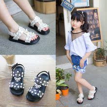 女童百搭凉鞋新款夏季韩版沙滩鞋露趾学生公主凉鞋水钻儿童罗马鞋