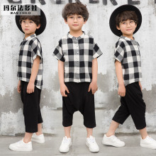 男童夏装套装2017新款韩版男宝宝夏季格子衬衫短裤时尚儿童两件套